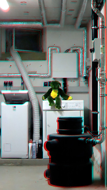 | 916 PHOTO 3D – Kellerimpressionen mit Frosch (2025) Stereoaufnahmen mit meiner Digitalkamera Fujifilm Finepix Real 3D. © streckov ! Zur Darstellung der räumlichen Tiefe auf nicht 3D-fähigen Medien habe ich die Fotos per Anaglyph-Verfahren konvertiert und im Anschluss in das 9 zu 16 Format eingepasst. |