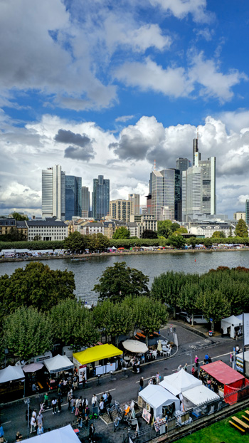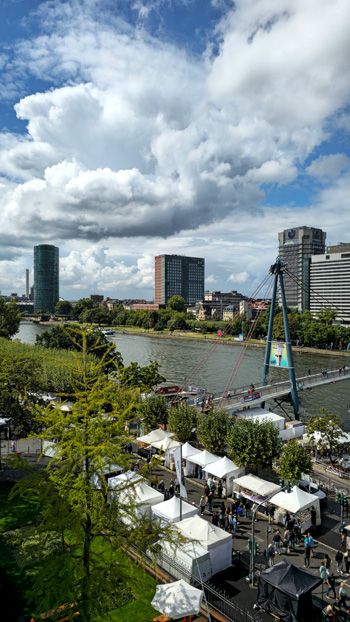 | 916 PHOTO COLOR – Panorama Frankfurt am Main (09/2025) Mit meinem Smartphone eingefangen und natürlich noch etwas nachbearbeitet. © streckov ! Impressionen von der Dachterasse des Städelmuseums mit Ausblick auf das Museumsuferfest (MUF). |