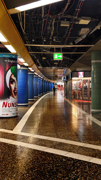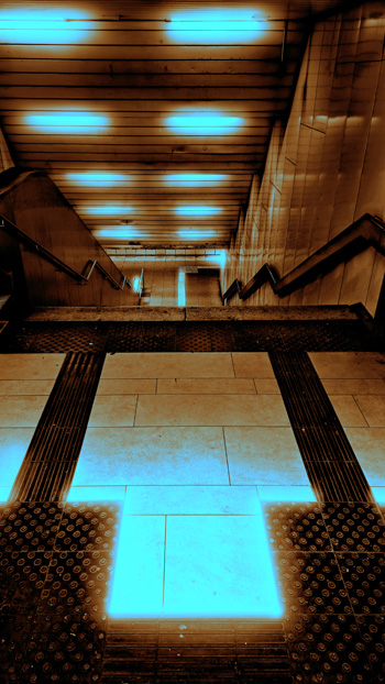 | 916 PHOTO MODE – Frankfurt Hauptwache (2025) Mit meinem Smartphone eingefangen und nachträglich stark verfremdet. © streckov ! Alle Aufnahmen stammen von mir und ich habe sie anschließend selbst manuell per Bildbearbeitungsprogramm ohne künstliche Hilfe nachbearbeitet. |